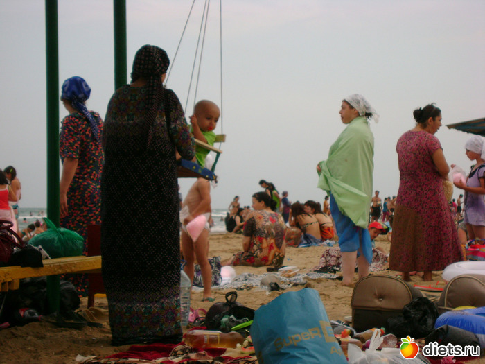 На Каспии - это у них такие купальники. Но смотрятся ( на фоне раздетых) Инопланетянами на пляже.