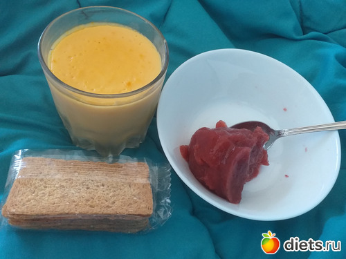 Завтрак: запеканка (творог, яйцо, отруби, изолят, разрыхлитель), варенье на сахзаме
