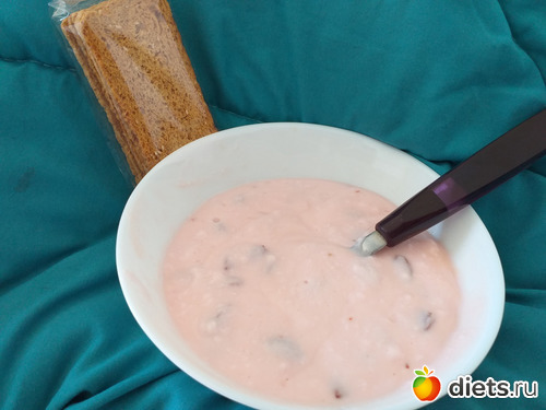 Завтрак: запеканка (творог, яйцо, отруби, изолят, разрыхлитель, соевое молоко)