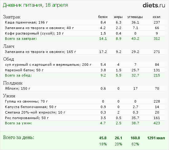 Diets.ru Мой путь к красивому и стройному телу. День 3