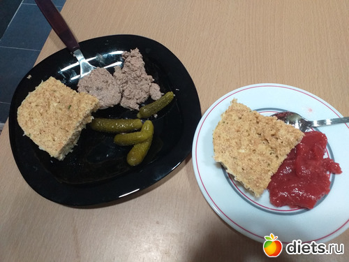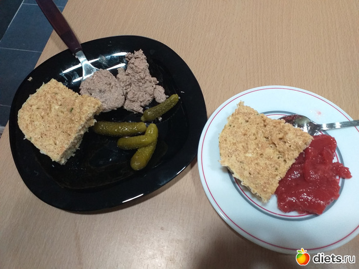 Ланч: хлеб (яйцо, отруби, немного творога, разрыхлитель), паштет из куриной печени, огурчики, варенье на сахзаме