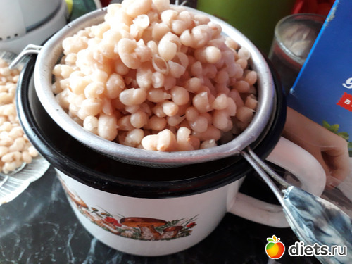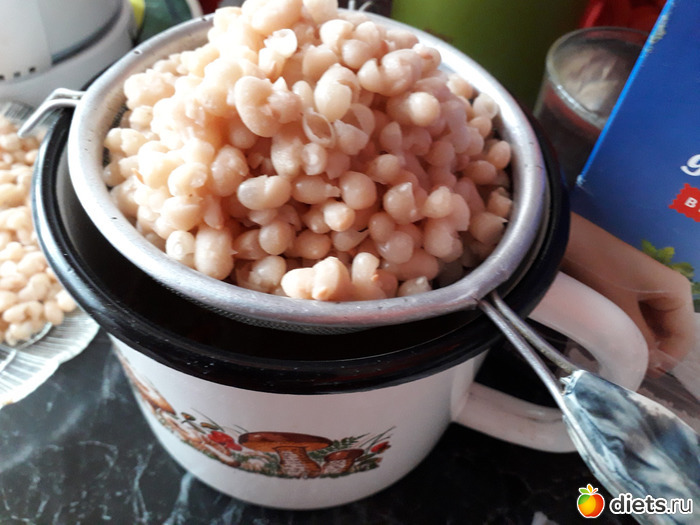 Замачиваем фасоль в холодной воде. Сварить до готовности. Когда фасоль сварится, слить воду, дать остыть. Воду -не выливаем, он может пригодиться для разбавления густоты паштета или его можно использовать при варке овощного суа.