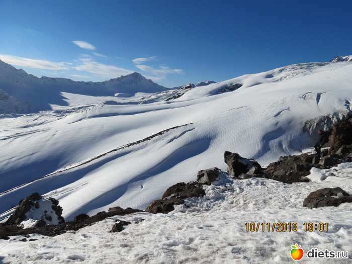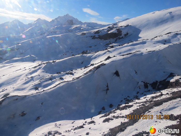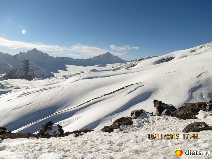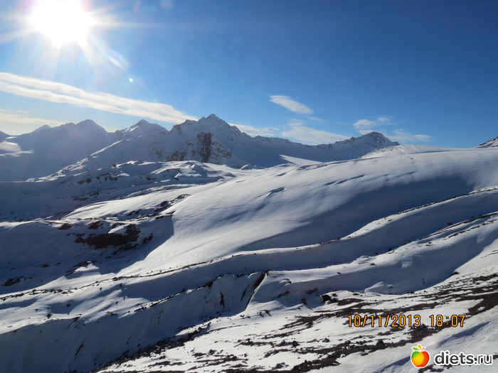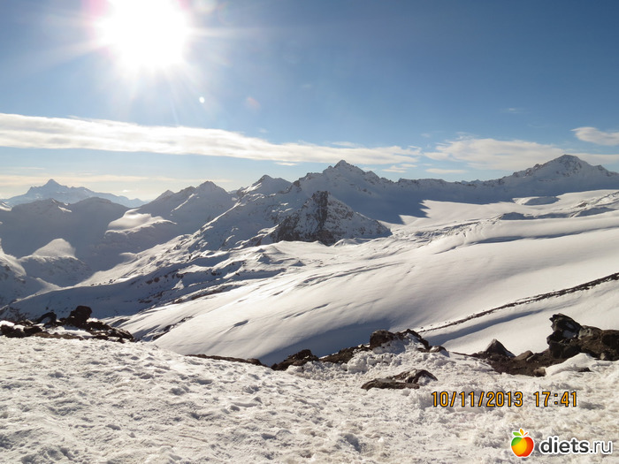 Эльбрус - это самое яркое впечатление от двух поездок на Кавказ... Для начала немного информации. А теперь, поехали! Я всегда думала, что там, наверху, холодно. Нифига. Там очень тепло. Там солнечно. Там ярко. Там снежно-бело. Там... смотрите сами... безмятежное и гордое царство Снежной Королевы.очень тёплое. Это надо видеть своими глазами, конечно...