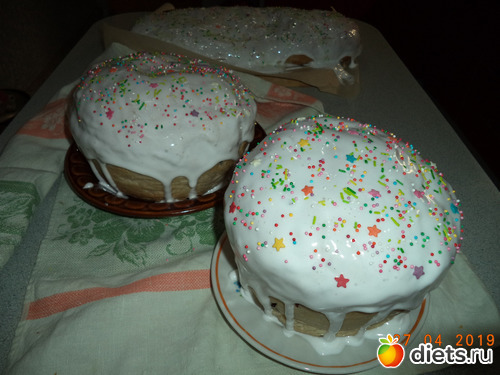 Завтра пасха! Уже успела куличей напечь!!) дети рады )) Ну вот чуть отчет написала и снова на кухню надо бежать! Затра вся родня у нас собирается)) Всем шикарных отвесов и с наступающей Пасхой!!