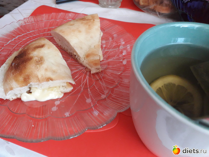 -ГОРЯЧИЙ БУТЕРБРОД С СЫРОМ В УЗБЕКСКОЙ ЛЕПЕШКЕ, ЧАЙ ЗЕЛЕНЫЙ С ЛИМОНОМ