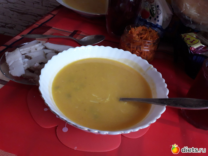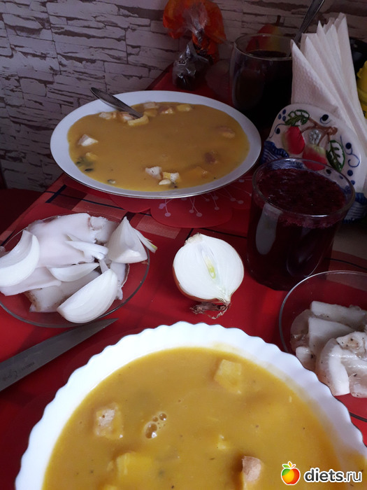 -ТЫКВЕННЫЙ СУП, ЗЕЛЬЦ, ЧЕРНЫЙ ХЛЕБ, КОМПОТ