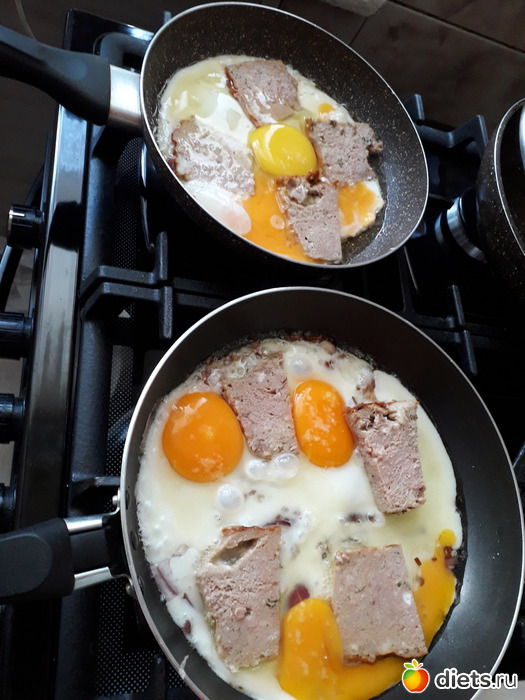 Осталось половина террина, не съели, наготовила, как всегда много-попробовала заморозить. После морозилки ведет себя прекрасно! Пожарила с частью террина яичницу на завтрак.