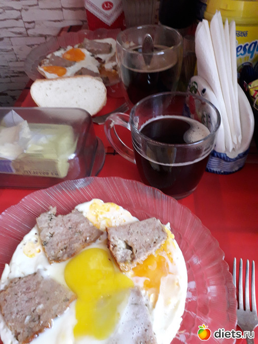 -ЯИЧНИЦА С МЯСНЫМ ТЕРРИНОМ, КОФЕ