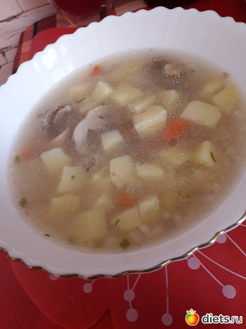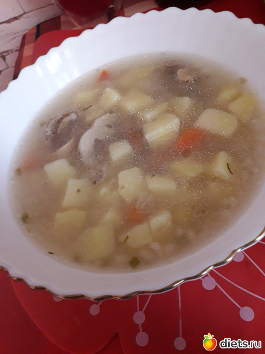 -ГРИБНОЙ СУП С ЗАМОРОЖЕННЫМИ ЛЕСНЫМИ ГРИБАМИ, С КАРТОФЕЛЕМ И ПЕРЛОВКОЙ