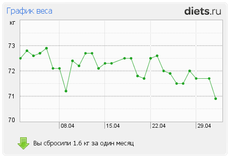 Как пишет мой дневничок 94 дня я слежу за собой, итог минус - 6.1 кг.