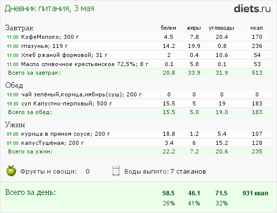 Калорийность продуктов