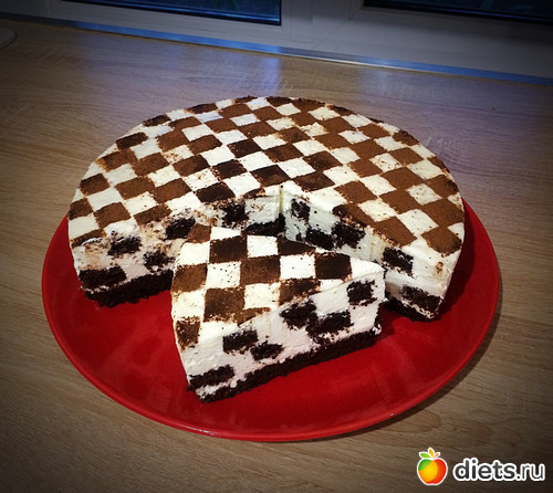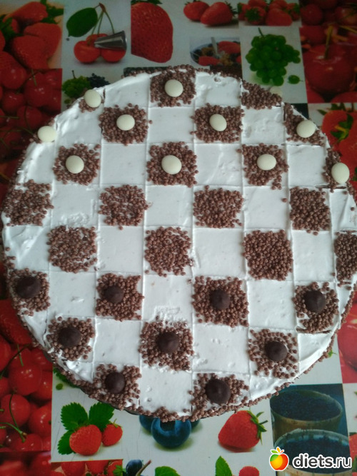 «Шахматная доска», всегда хочется испечь что-то новое, в составе крема как раз были сливки.