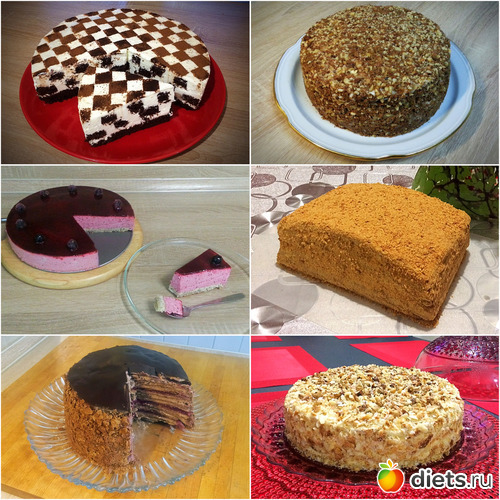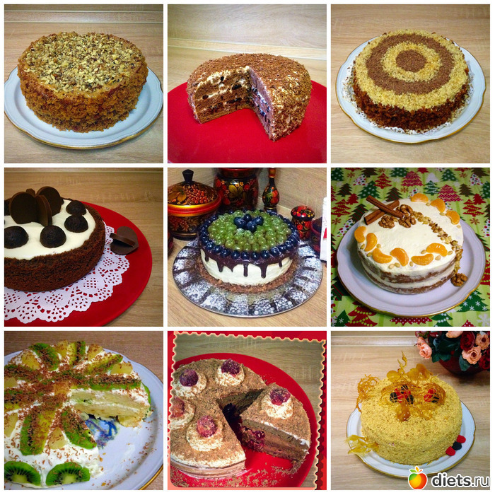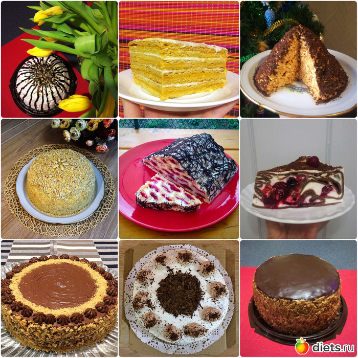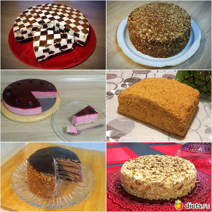 Собрала свои тортики (это еще не все) в коллажи. Вопрос, что из новенького в следующий раз попробовать? Склоняюсь к "Птичье молоко", один раз готовила, но суфле плохо застыло, надо реабилитироваться. Хочется чего-то лёгкого, воздушного.