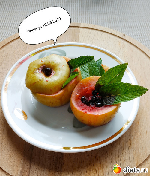 Печеное яблоко со смородиной в микроволновке. Рецепт смотрите 12 мая 2019