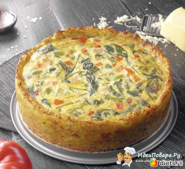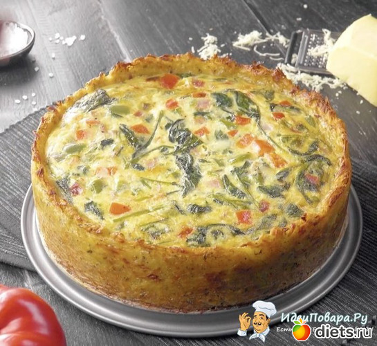 Простые и привычные ингредиенты в непривычном исполнении заставят вас полюбить этот пирог. Привлекательный вид, аппетитный омлет с овощами и сыром, картофельная основа пропитанная ароматами свежей зелени не оставят равнодушными ни взрослых ни детей. Помимо вкуса мужчины оценят сытность (в составе сыр), а хозяйки – простоту приготовления и универсальность пирога. Его можно готовить даже на завтрак.