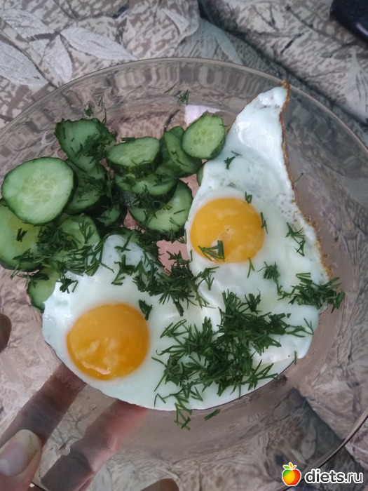 Ужин- яичница с огурцом и зеленью