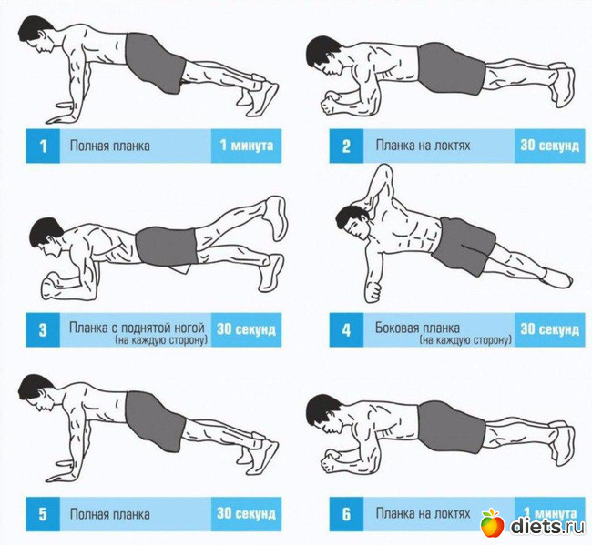 Планка по минуте. Пропустила два раза. Один раз попыталась сделать серию планок, но это оказалось слишком тяжело для меня (стою не больше минуты). Поэтому я её несколько облегчила: поделила всё на два!