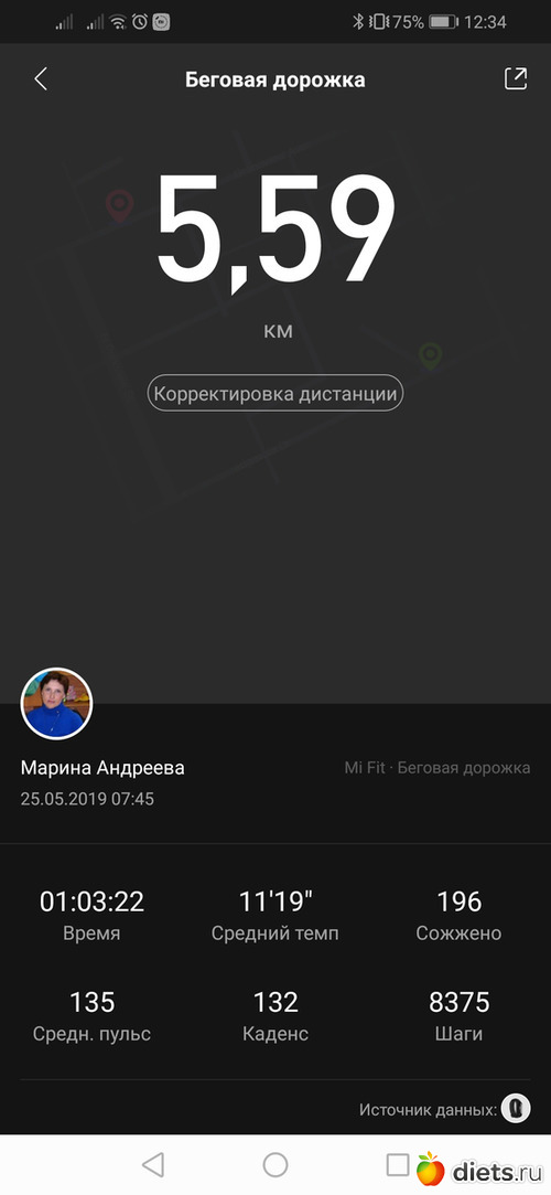 У меня на руке фитнес браслет, в нём есть беговая дорожка. А бегаю я на стадионе, я её тыкаю и просто бегу, а не важно на сколько и сколько!