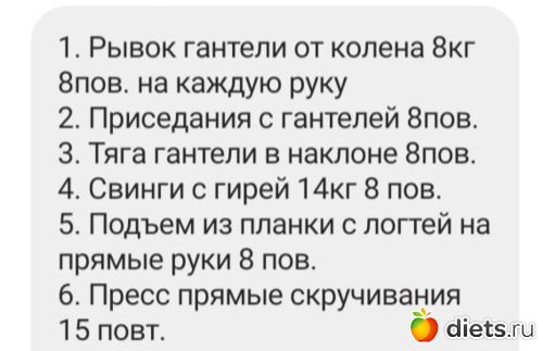 5. Было скучно на отдыхе между тягами добавила жим гантелей лежа на разминку 10кг 12 пов. 4-ре рабочих подхода 12кг 10пов.