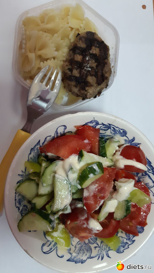 Обед:Вермишель (48гр), котлетка (60гр), салат из овощей со сметаной (15гр)
