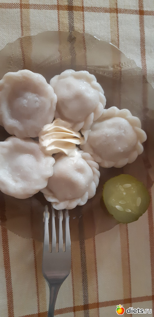 Ужин:Пельмени (5шт) и огурчик маринованный. Дома были ремонтные работы по водоснабжению. Поэтому, неизвестно, когда теперь нормально готовить можно будет.