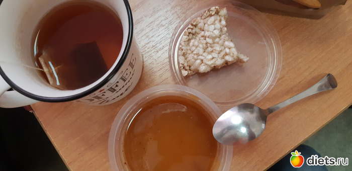 Ланч:Чай, мёд, огрызок хлебца, завалявшийся в шкафчике. Не хотелось много кушать.