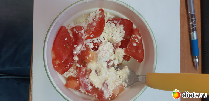 Полдник:Творог со сметаной и помидором. Очень вкусно