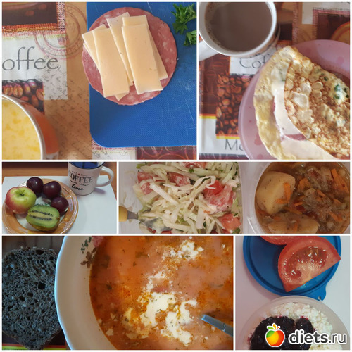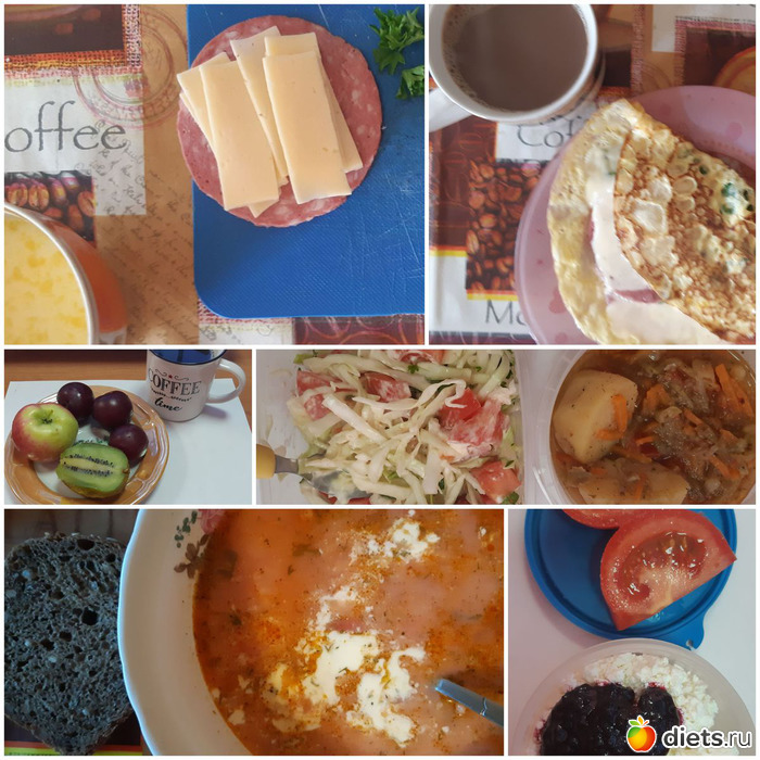 Мы с Дашенькой спекли творожную запеканку, сварили яиц и компот из черноплодки с вишней и сделали сырно-колбасный омлет в лаваше. А на общак активные родители покупали курицу для шашлыка, овощи и т.д.