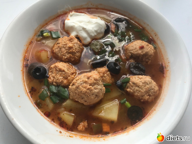 Даем покипеть 2-3 минуты, добавляем оливки, дольки лимона, свежую зелень... Наш суп готов! Если вам хочется сварит суп по-жирнее, добавьте больше масла.