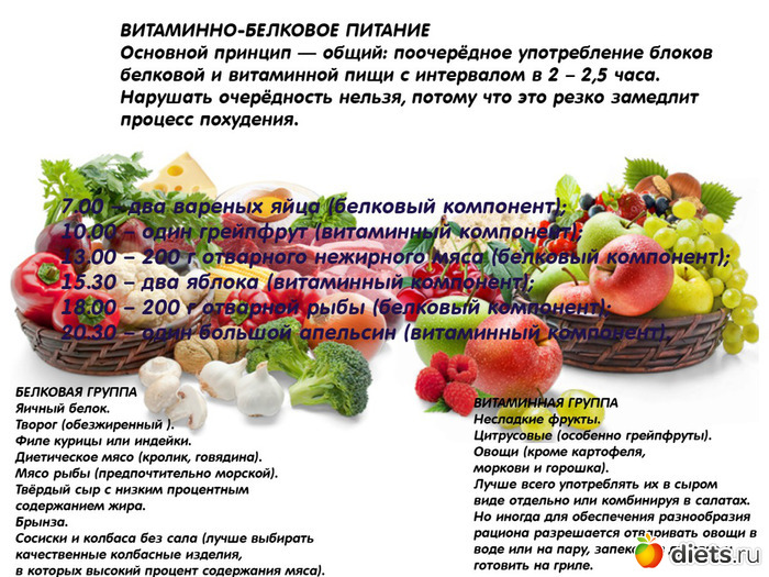 белковой и витаминной пищи с интервалом в 2 – 2,5 часа.