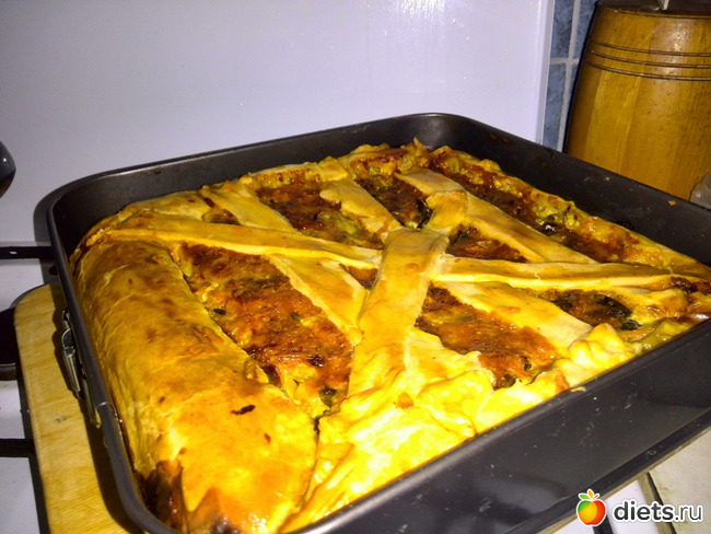 Слоеное тесто. Для быстроты приготовления я взяла покупное, но Вы можете сделать сами, если есть такое желание. Будет еще вкуснее и домашнее.