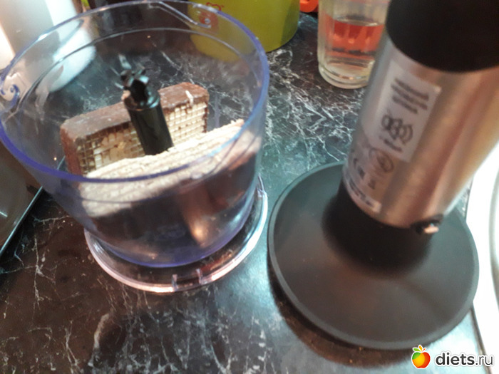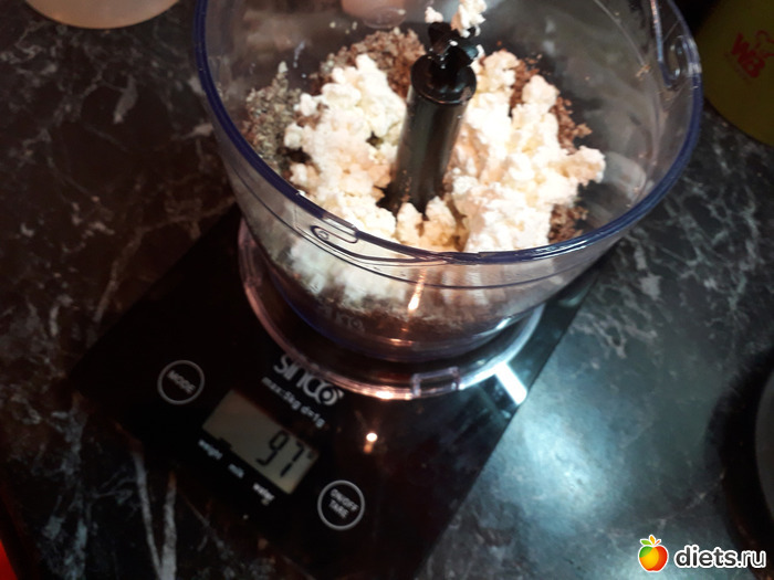 Творог с вафлями измельчить блендером. Если масса плохо измельчается, такое бывает, если творог очень сухой, можно добавить пару ст.л. сметаны, ряженки или молока.