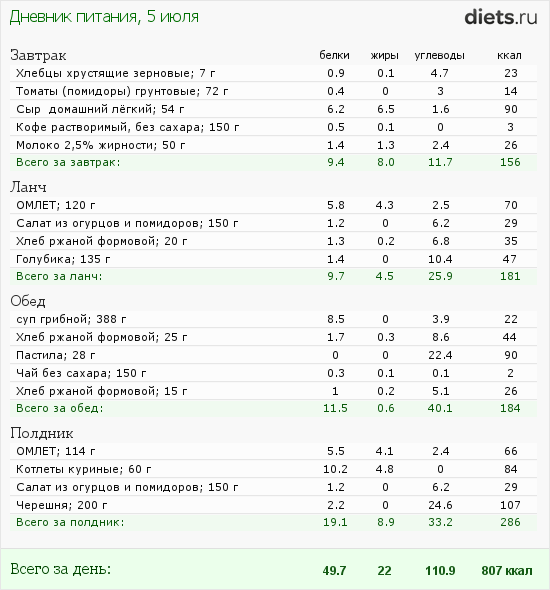 Diets.ru Вечерний отчёт