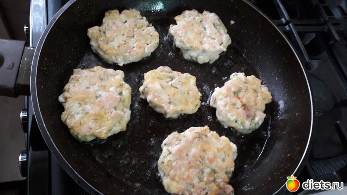 Выкладываем по одной столовой ложке или формируем мокрыми руками котлетки, не обваливая ни в какой панировке, на сковороду с растительным маслом