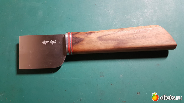 А дружу вот с этим красавцем мастера Валентина Хамидова. Из нержавеющей стали 9хф (59—60 HRc) с рукояткой из Якаранды.