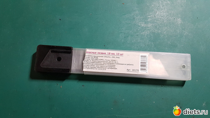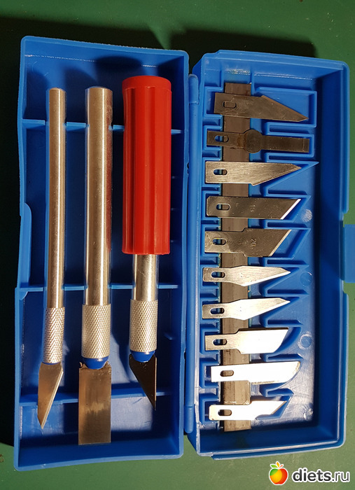 И запасные лезвия, конечно. Лучше брать от Olfa опять же, но все руки не доходят заказать.