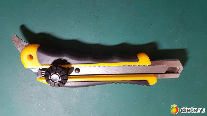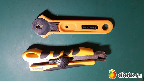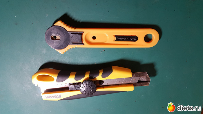 На фото еще круглый нож от знаменитой (и очень хорошей) фирмы Olfa, от которого где-то в недрах ящика для инструментов отвалилось лезвие