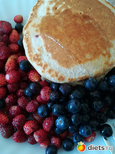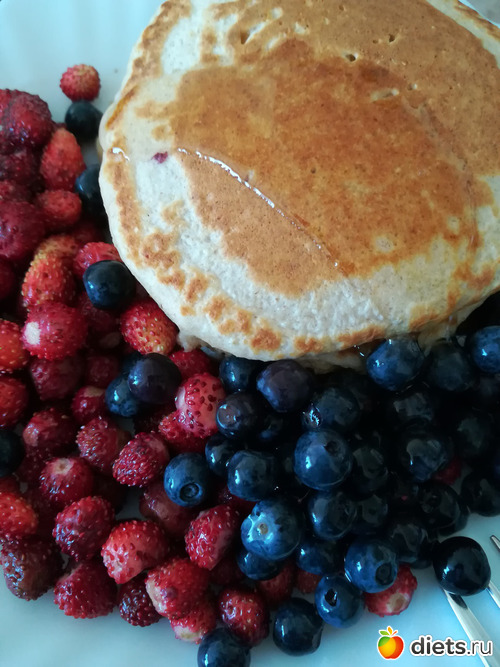 Стакан молока чуть-чуть подогреть, кинуть туда маленький кусочек сливочного масла, чтобы растаяло. Добавить одно яйцо, соль, сахар по вкусу. Взбить вилкой. И овсяную муку с пекарским порошком до консистенции густой сметаны. И выпекать на ап сковороде.