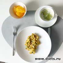 На завтрак делаю омлет с паприкой - 2 яйца, куча зелени (зеленый лук и укроп) и немного порошка паприки. Мне очень нравится такое сочетание. Как будто ешь что-то кремовое, очень вкусно. Хочу еще попробовать с базиликом. Апельсин и матча с соевым молоком (кофе я оставляю ланч и вечер)