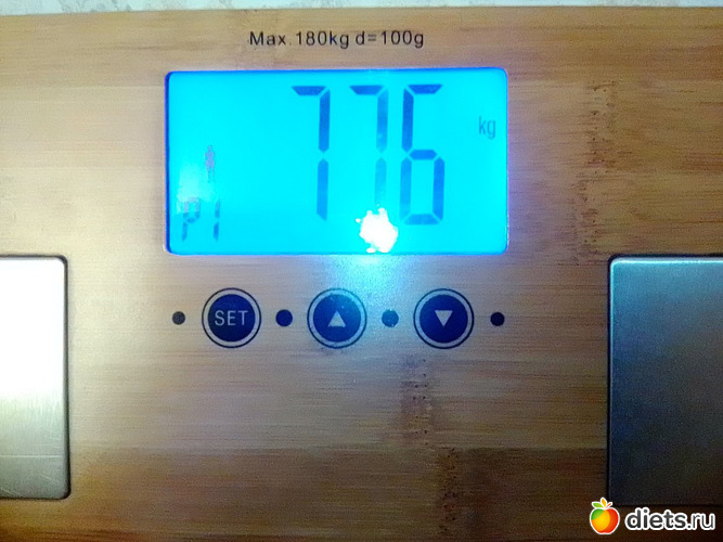 Вес два дня стоял на месте - 77,5 кг. Вес сегодня 77,6 кг.