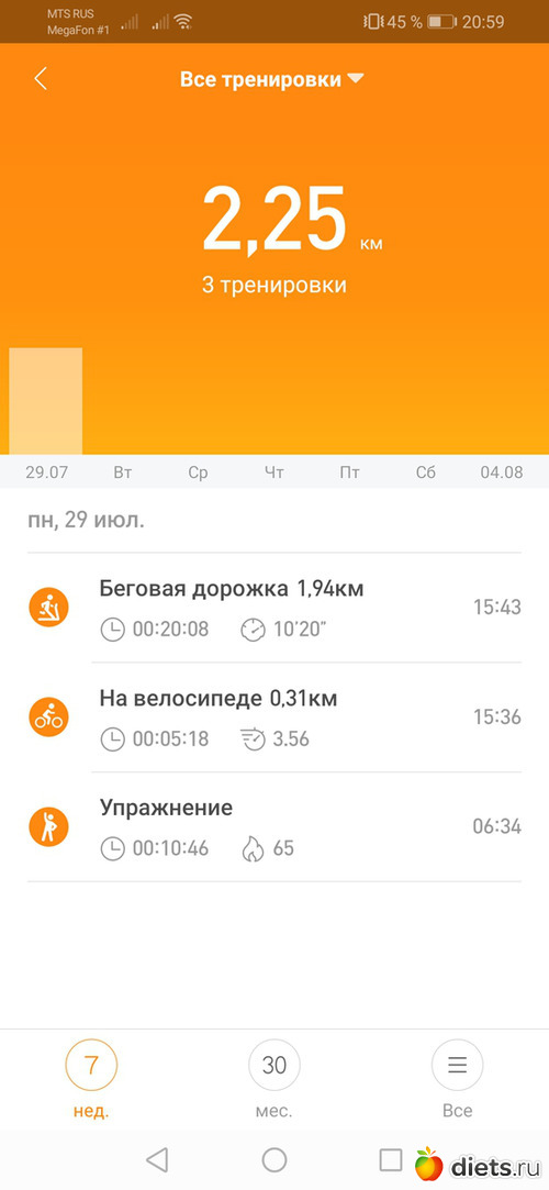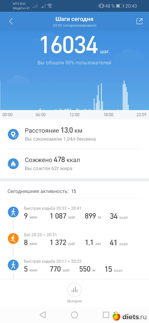 Ух и беговую дорожку сегодня испытала. Фитнес браслетик у меня все фиксировал, что же у меня получилось: