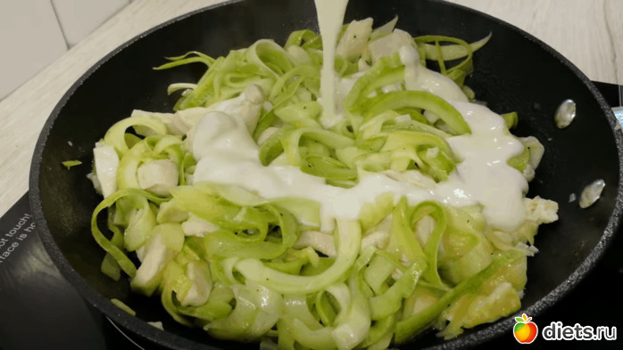 В этом рецепте кабачки раскрываются совершенно по-новому! Нежные, красивые, сливочные кабачковые спагетти хороши как с куриной грудки, так и без неё — настолько удачно подходит сырный соус к обжаренным кабачкам. Опробуйте этот лёгкий и вкусный рецепт на ужин, и вы захотите повторить его ещё не один раз!
