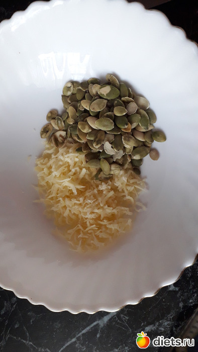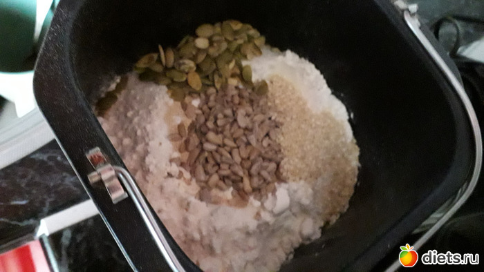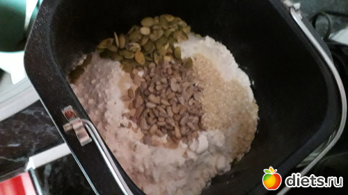 горсть семечек тыквенных.,1горсть подсолнечных,1 горсть кунжута-не взвешиваю(их кладу сразу,не после сигнала)