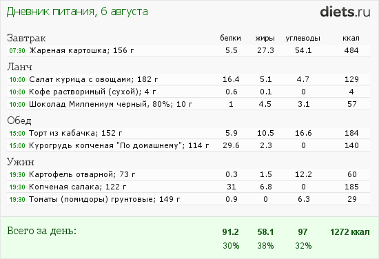 Калорийность продуктов