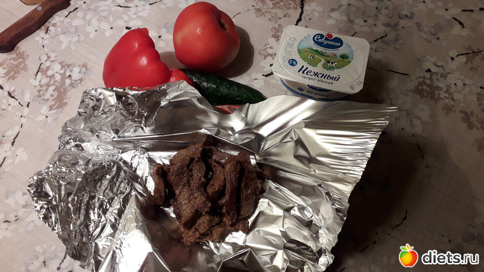 Говядина тушеная +помидорка+огурчик+ перчик+ творог (фасованные орешки к творогу всегда на работе)