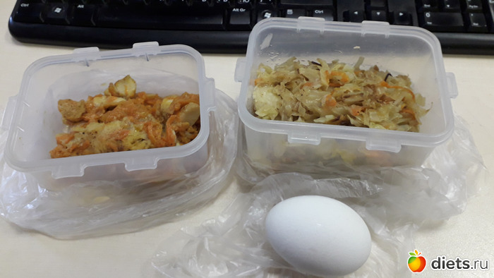Сегодня на обед треска тушеная + тушеная капуста и яйцо