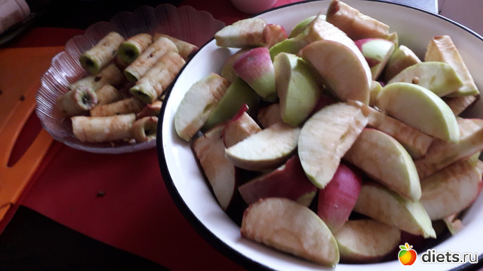 Отличная идея с яблоками и безотходным производством. У нас таких крупных яблок нет, бывает ранетка, но этот год неурожайный. Мы из нее пастилу делали. В небольшом количестве воды уваривала нарезанную мякоть, потом ее через сито, в получившееся пюре сахар - и на силиконовый коврик в духовку, сушить при самой низкой температуре. Пока не схватится, это по цвету сразу видно. Потом скатать в рулончик. Хранится при комнатной температуре год-полтора спокойно.