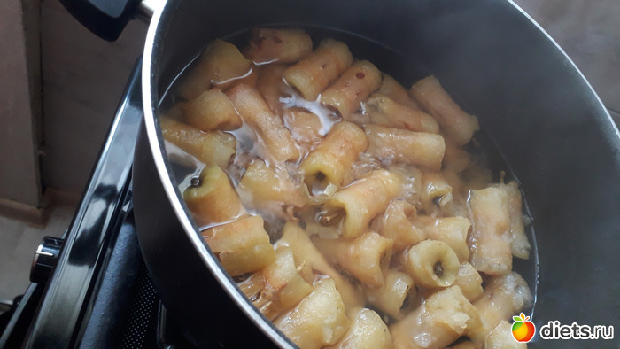 Все это проваривается в маленьком количестве воды, процеживается и получается прекрасный яблочный концентрат.