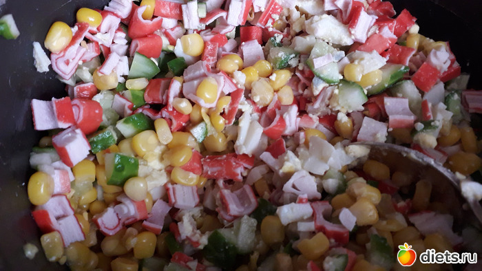 -САЛАТ С КРАБОВЫМИ ПАЛОЧКАМИ, КУКУРУЗОЙ, ОГУРЦОМ