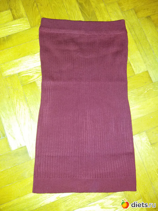 Бордовая юбка-труба, просто тонкая машинная вязка резинкой. Смотрится простенько. В хозяйстве пригодилась, носилась часто, стиралась отлично. Никаких изменений после сезона активной носки.